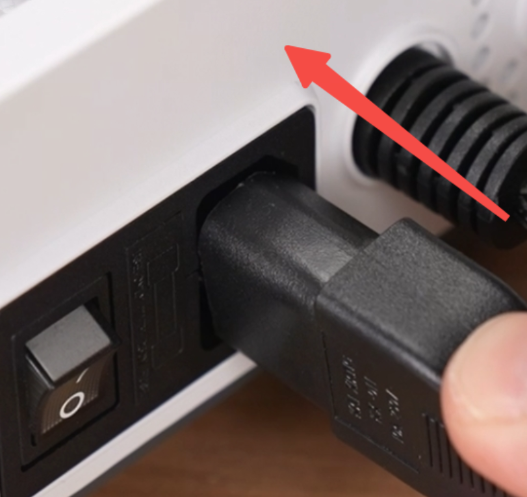 取出并连接电源线,打开开关;