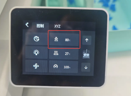 在控制页面将喷嘴温度降至80度,等待喷嘴降温。