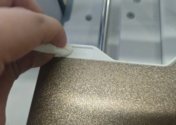 使用清洁布蘸取酒精,擦拭残胶处,彻底清洁