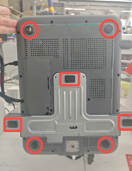 将机器放置在平整的桌面,观察4个圆形软脚垫是否都接触桌面