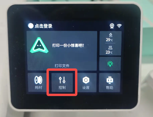 在机器端屏幕进入设备控制页面,将热端温度调整至100℃