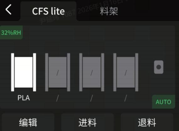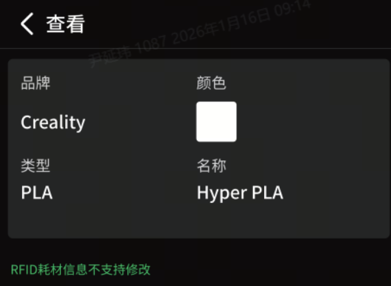 *若使用RFID耗材,CFS lite可自动识别耗材信息: