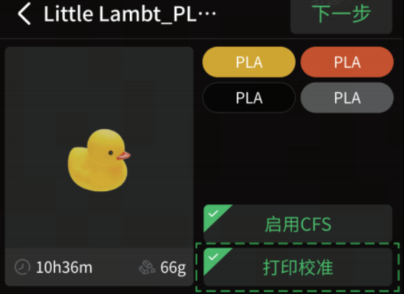 推荐勾选“启用CFS”和“打印校准”功能,点击“下一步”。