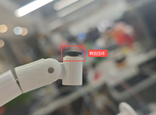 在气动接头上有一圈凸起的结构,向下按压可以释放铁氟龙管,此时您才可以拔出铁氟龙管;