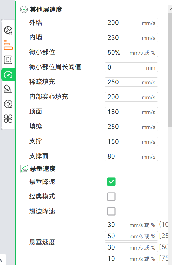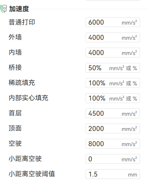 检查切片参数设置的速度和加速度,SPARKX i7 最高支持速度500mm/s、加速度10000mm/s² ,超过该数值可能会在打印过程中发生丢步导致错层。