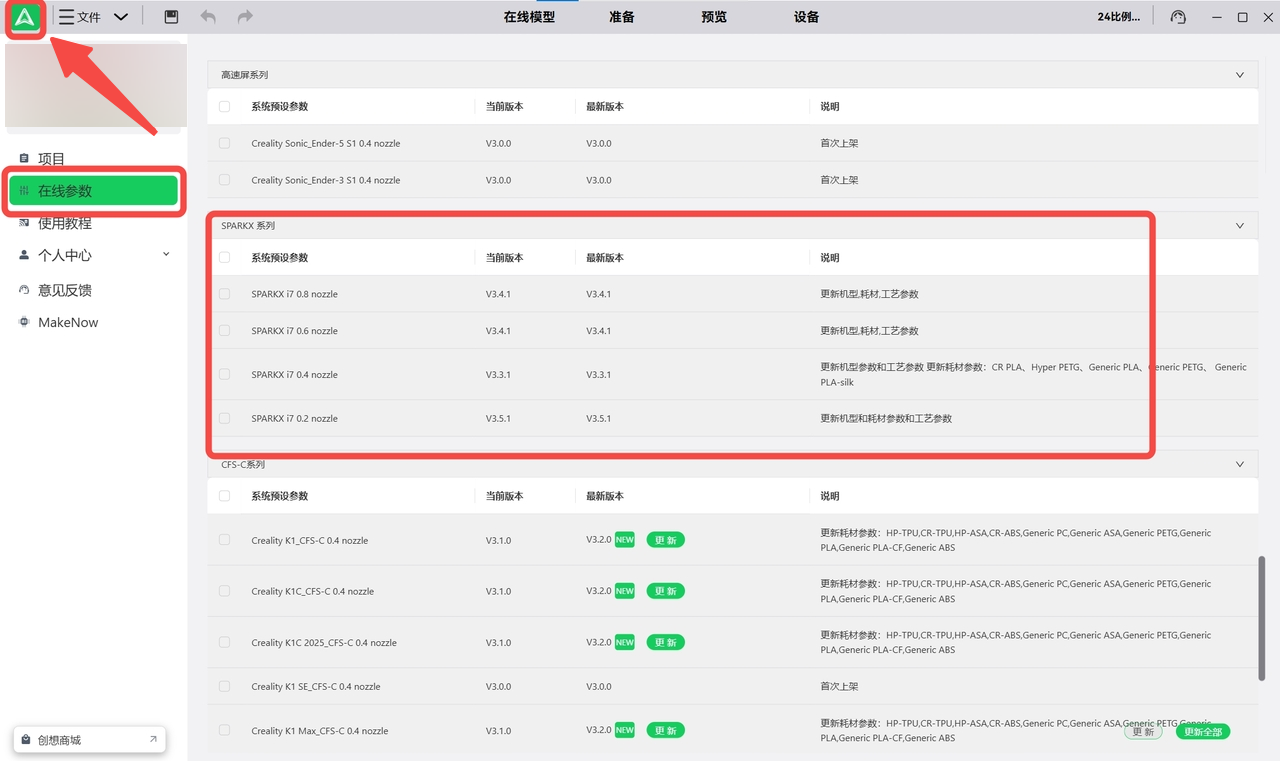 检查Creality Print软件版本