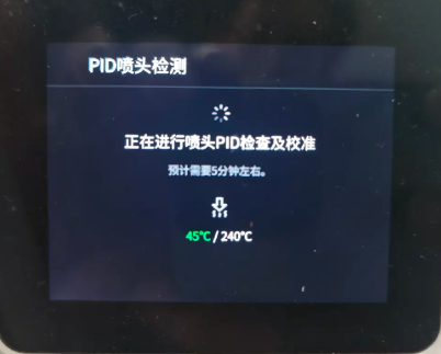 点击开始,机器会自动进行 PID 喷头检测与校准。检测期间喷头会多次升降温,检测耗时5分钟左右。