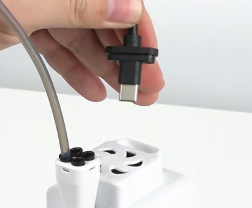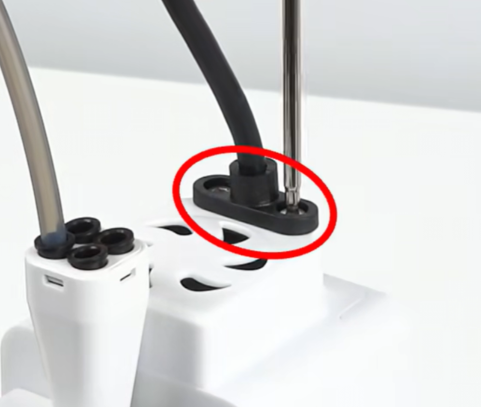 插入工具头数据线,并固定螺丝拧紧;装回铁氟龙管和集线器