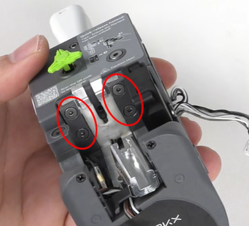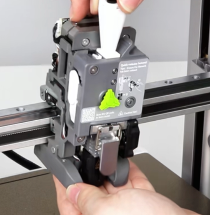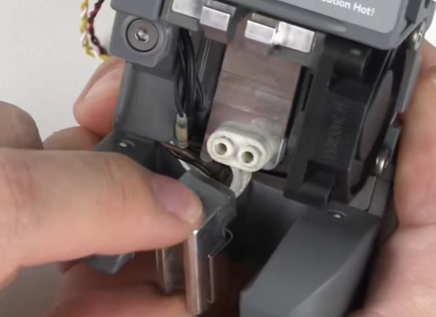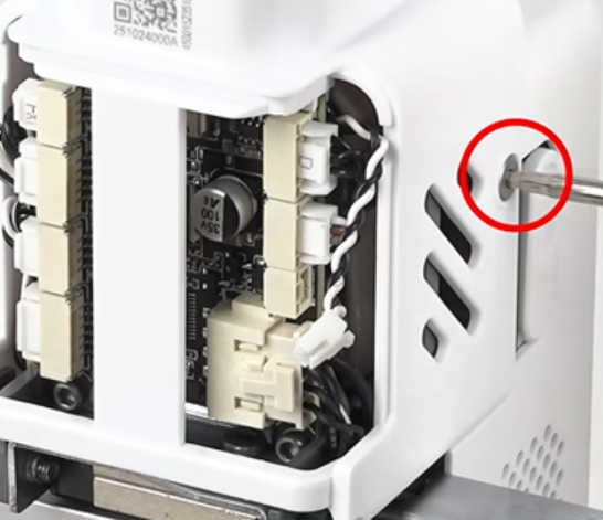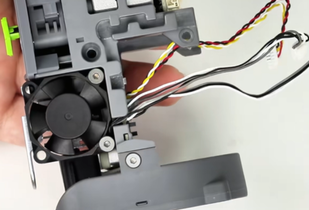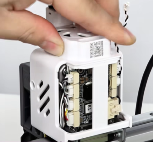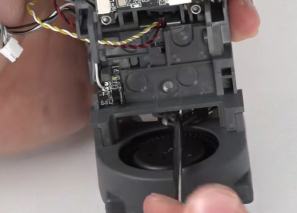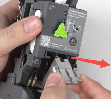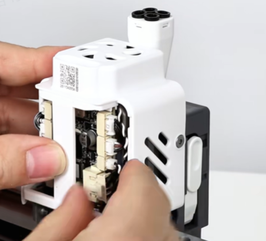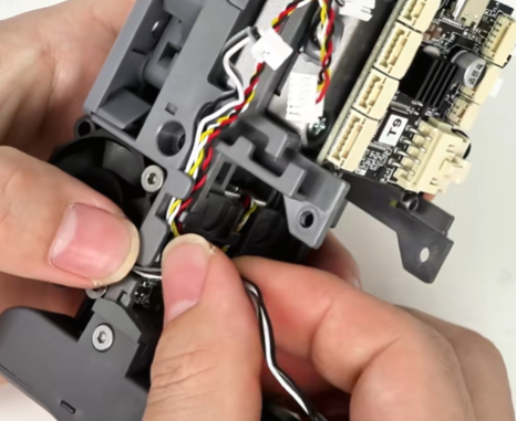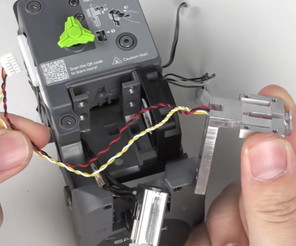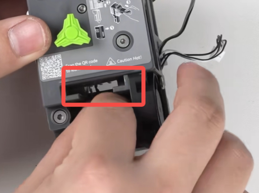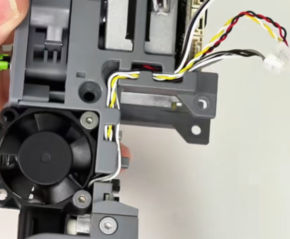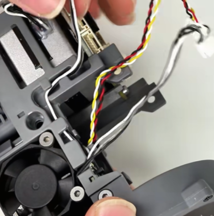 取下工具头后盖,拔掉挤出电机散热风扇端子;可使用镊子辅助操作