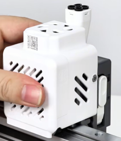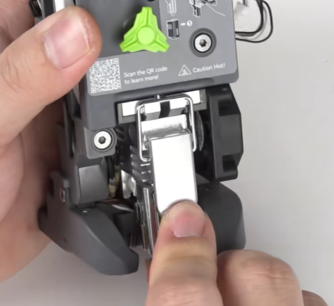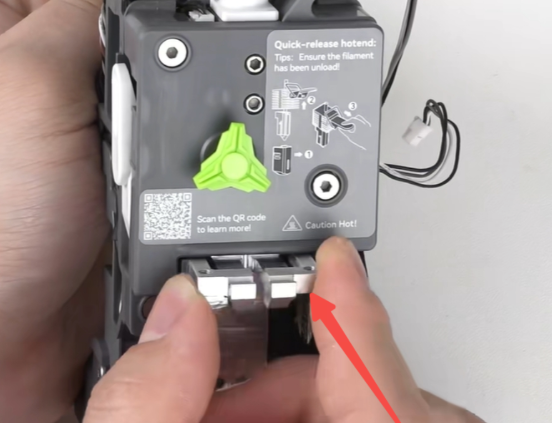 装入快拆热端,并将热端的搭扣扣上,再将热端加热组件的固定螺丝完全拧紧;拧紧后检查快拆热端安装、拆卸是否顺畅