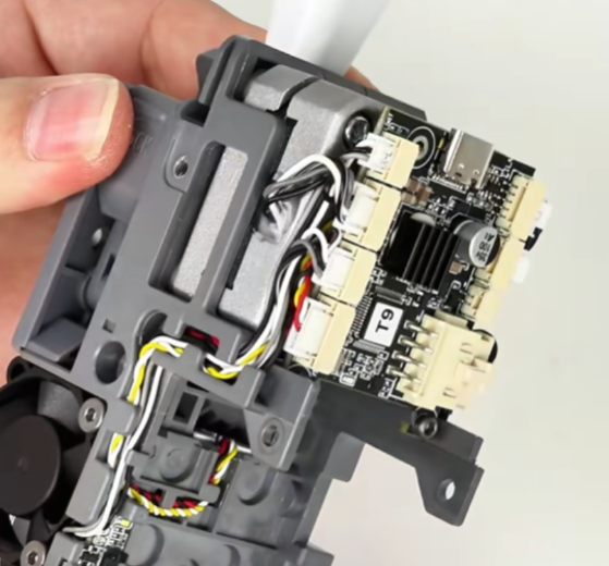 将工具头主板面朝向自己,拔掉左侧的接线端子,并将线材从理线槽内取出