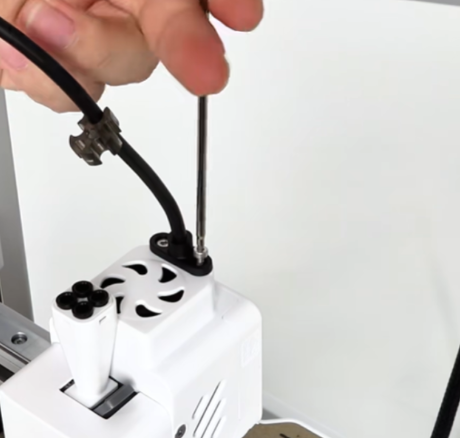装回挤出机后壳,拧紧两颗固定螺丝,并将接线端子插回,安装挤出机后壳