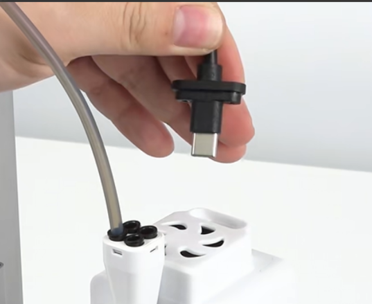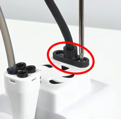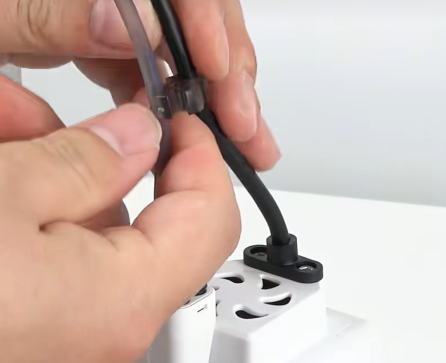 插入工具头数据线 并拧紧两颗固定螺丝,将铁氟龙料管卡入集线器