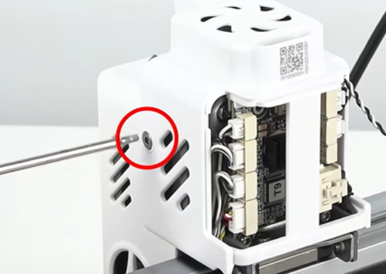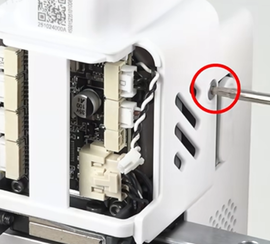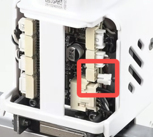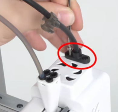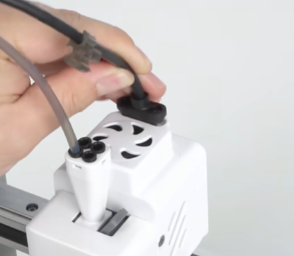 插入除挤出机电机散热风扇外所有接线端子,注意不要插错端口!装回挤出机后壳并插上挤出电机风扇端子