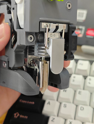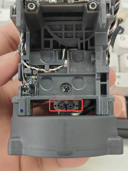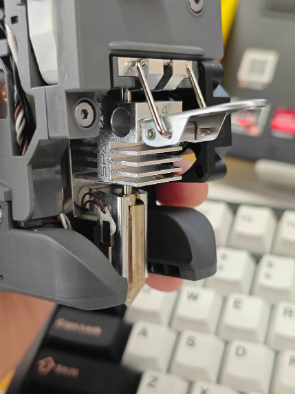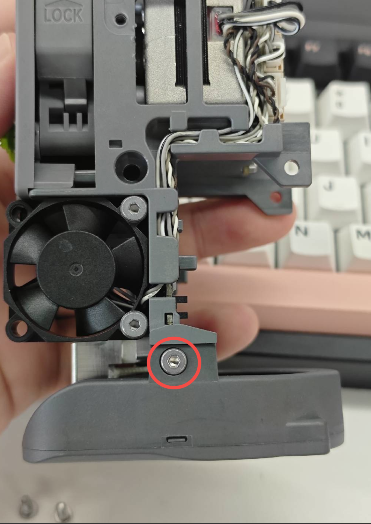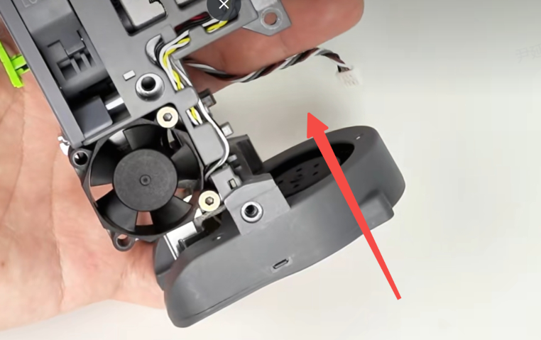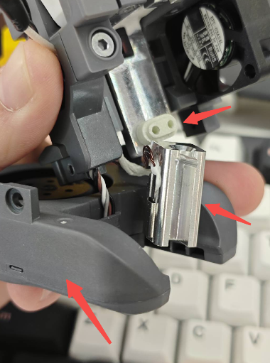 取下工具头后盖,拔掉挤出电机散热风扇端子;可使用镊子辅助操作