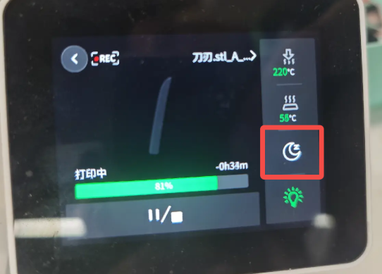 打印完成后,点击完成弹窗的任意按键,或使用APP/切片软件发起下一次打印,i7将自动退出安睡模式,恢复默认运行状态;