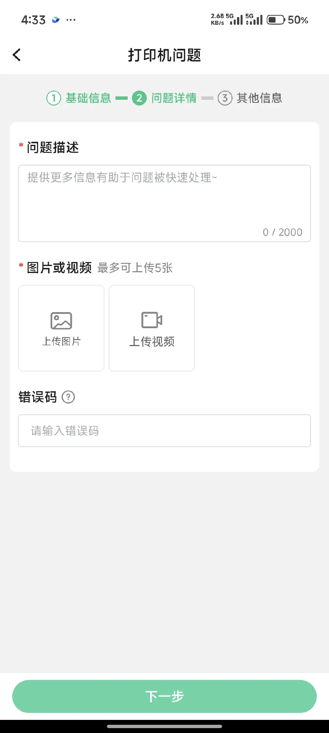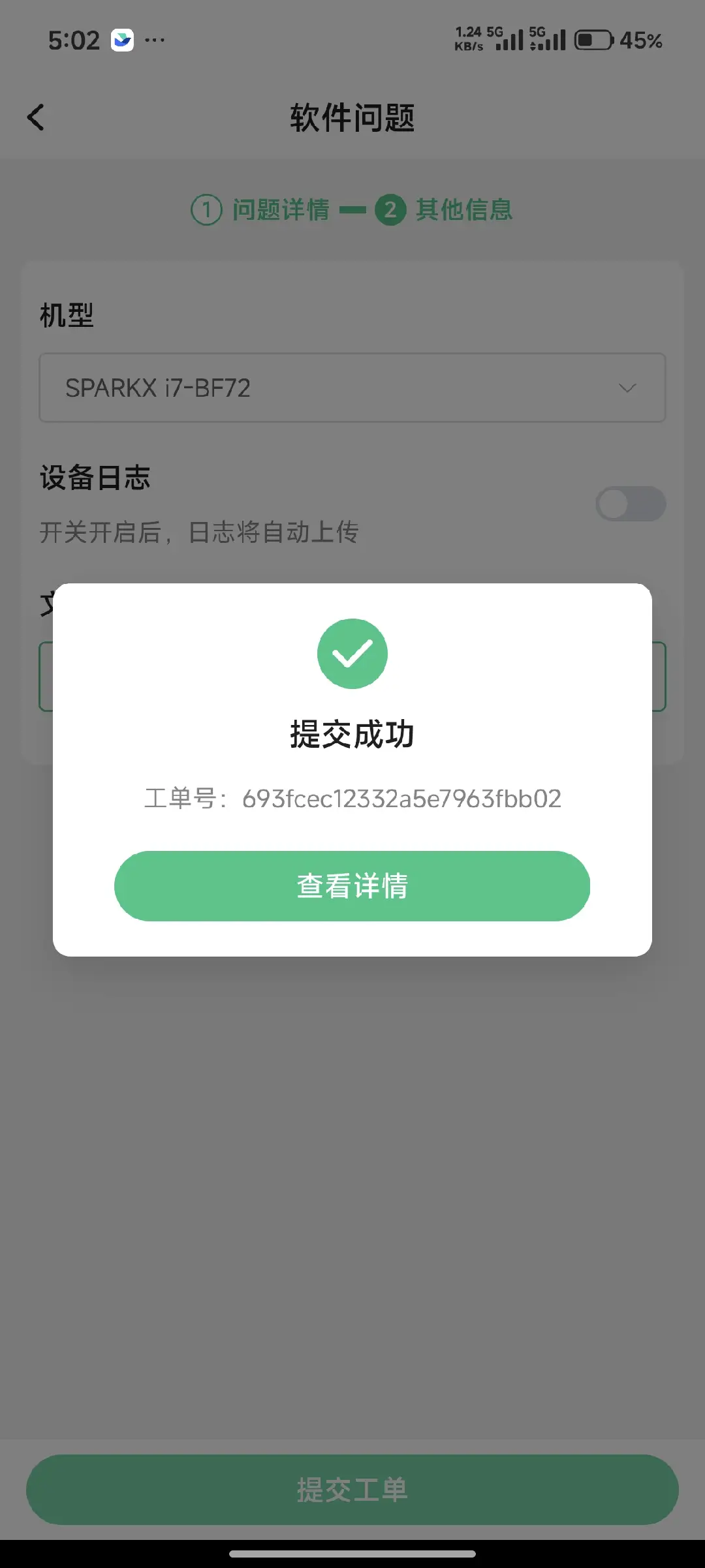 将信息完整描述填写,点击提交,完成工单填写。提交完工单后会有工作人员第一时间在创想云APP与您联系。