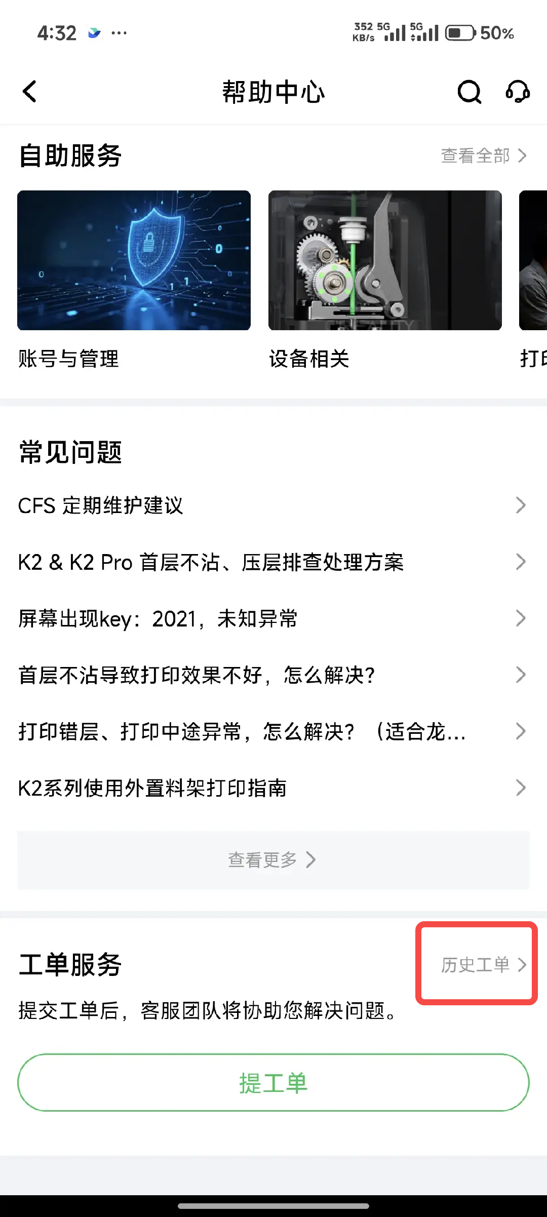 您可以自行追踪您的工单进展,点击“我的 - 帮助中心 - 历史工单”即可查看您的工单详情以及状态
